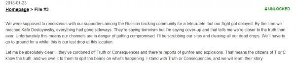 网站中一段开头文字表面,在某一地区发生了恐怖的事件,有枪声和爆炸声传来,而官方掩盖消息称是恐怖袭击,封锁了事实真相。然后一段长达一分钟的录音提到,这个地区因不知名的原因爆发了某种怪物,它由人感染而成,变成怪物的人会毫不犹豫杀死身边的朋友和爱人,而官方则在努力避免消息传出,并且极力控制灾情。最后录音中提到,如果听到这个录音则证明事情得到了控制。