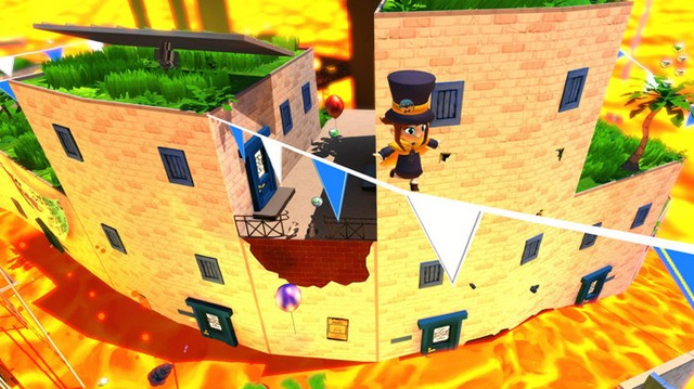 《时光之帽》玩得时间越长越有意思。这不仅仅是因为发现新徽章或新帽子所带来的新鲜感,更是因为游戏关卡本身的创意、规模和奖励。虽然游戏的剧情并不是线性的,但是主角本身有着清晰的任务目标,让平台和故事线能够流畅地衔接起来。穿过黑手党之城,在一辆火车的车厢间穿梭,运用帽子的能力寻找线索,拿到去往下一关的钥匙。除此之外,你还会蹑手蹑脚地穿过杂乱的舞台后台,因为这里禁止人进入,所以你必须小心谨慎,以免被猫头鹰发现。这些剧情都是为了平台而服务的,从而增加游戏的乐趣。