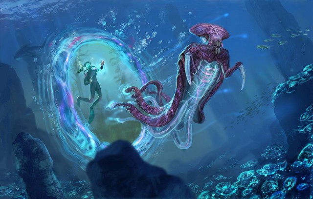 当你发现在这些庞然大物面前没有丝毫反抗力时,游戏的恐怖感就会加倍。你的生存小刀或者海虾号的电钻手臂都只能对付一些弱小的怪物,但海洋食物链顶端的巨型生物都是无法杀死的。警觉、潜行和诱饵都是你在危险深水区生存必不可少的要素。令笔者最为难忘的一次经历,就是驾驶独眼巨人号潜水艇悄无声息地穿过这些海怪们巡逻的区域。