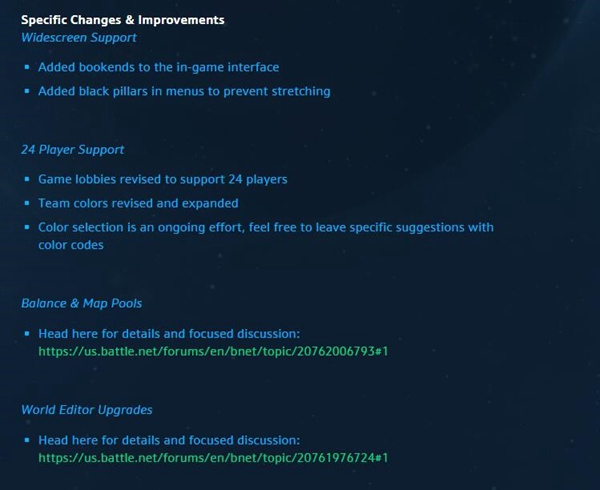 除此之外,此次的更新还包括游戏大厅最大支持24名玩家、地图新建改进、团队颜色增加、地图编辑器升级、英雄平衡、支持更高版本的苹果macOS系统。支持24名玩家之后,游戏的乐趣性也会大大提升,与此同时,官方还开放了便于直播的API接口,可以更加方便的在比赛中读取到双方的金钱、木材、人口、APM以及其他更多信息。