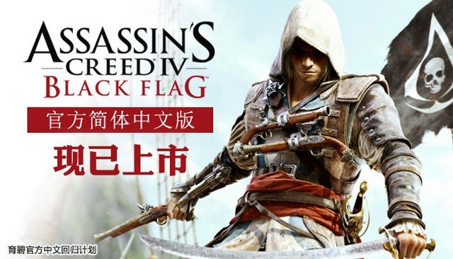 育碧宣布《刺客信条4:黑旗(Assassin's Creed IV:Black Flag)》官方简体中文更新现已正式在PC Uplay以及Steam平台正式上线。这也是育碧“官方中文回归计划”落实的第5个游戏作品。《刺客信条4:黑旗》简体中文语言包现已在Uplay以及Steam平台正式上线。已经拥有游戏的玩家可在更新完成后,进入游戏选择简体中文语言。而新购买的玩家可在客户端下载完成后选择简体中文进行游戏。