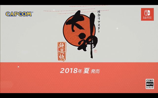 CAPCOM于早上7:00举办的线上直播发表会「Nintendo Direct 2018.3.9」中曝光,《大神》的HD Remaster版《大神 绝景版》将会登陆Nintendo Switch主机,预定2018夏季发售。