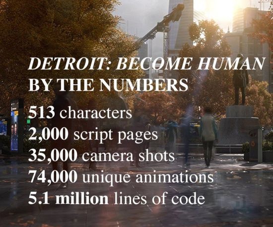 角色、分支叙述、动画和镜头最终包含在组成《底特律:变人》的510万行代码之中。数字并不代表一切,真正的考验是所有这些数字和片段在《底特律:变人》中如何交互叙事,以及这种叙事方式对玩家而言是否能够最为合理地深入游戏主题。