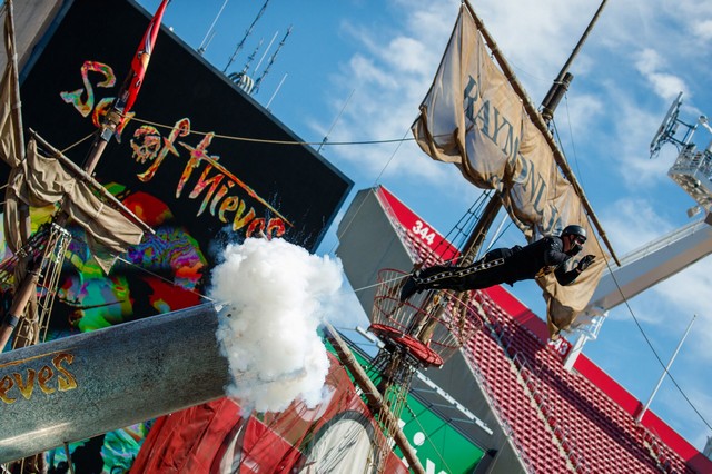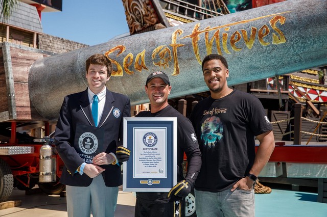 太平洋时间3 月13 日,为提前庆祝《盗贼之海(Sea of Thieves)》的上市,特技演员David “The Bullet” Smith通过该游戏主题的“人间大炮”表演打破了吉尼斯世界纪录。