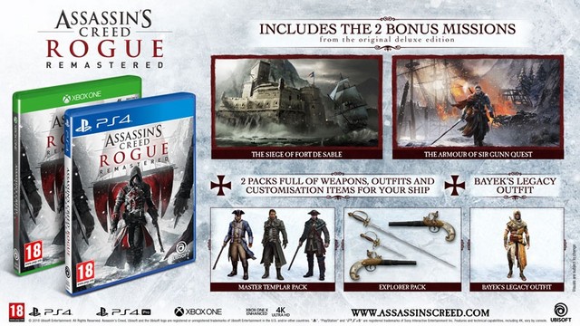 育碧(Ubisoft)宣布《刺客信条:叛变(Assassin's Creed:Rogue)》高清重制版现已正式登陆各大主机平台,包括PS4 Pro、PS4、Xbox One以及Xbox One X。