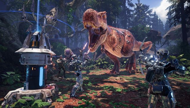 官方提到,本作目前拥有6个战斗场景,由于玩家需要在规定时间内保卫基地并修复脑波塔,因此打造出强力的武器将是玩家首要任务;同时还有多达50 种以上的远古生物,玩家可以使用基因枪采集基因,解锁相关物种的基因资讯并利用生物遗传因子以及材料来制作武器或道具。而在大厅,玩家除了能在查阅所解锁的恐龙资料外,也能解锁更多的道具蓝图。另外,不同于子弹列车、装甲车等高科技交通工具,玩家可利用获得的恐龙蛋孵化自己的专属恐龙,而长大的恐龙还能成为玩家的坐骑,体验与恐龙漫步探索的乐趣。
