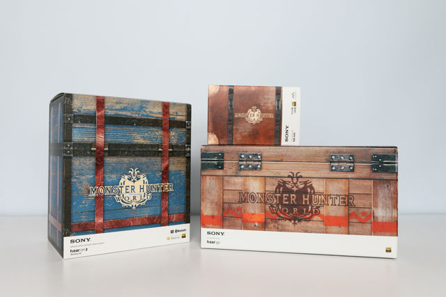 索尼日前配合PS4畅销狩猎动作游戏《怪物猎人世界》联名推出限量特别设计款式h.ear on 2无线蓝牙降噪耳机WH-H900N、Walkman数字随身听NW-A45以及h.ear go无线蓝牙喇叭SRS -HG1。3款产品皆采用游戏主题的补给箱造型外包装,并在特选的深色系机体上印制以金色线条描绘的新大陆古龙调查团标志。