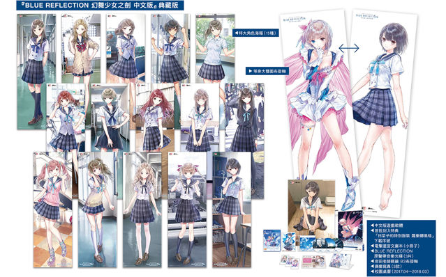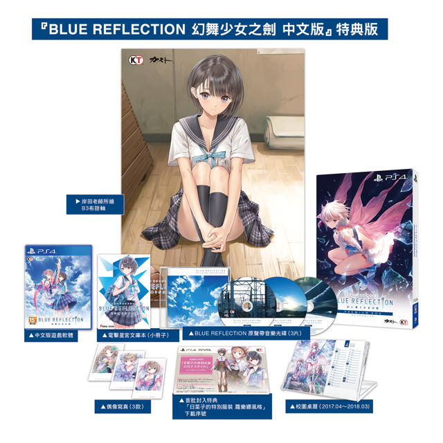 台湾光荣特库摩预定于2017年9月28日(四)发售《BLUE REFLECTION幻舞少女之剑》(PlayStation 4)繁体中文版,并于2017年9月1日公布限量的特典版、典藏版的内容物品。