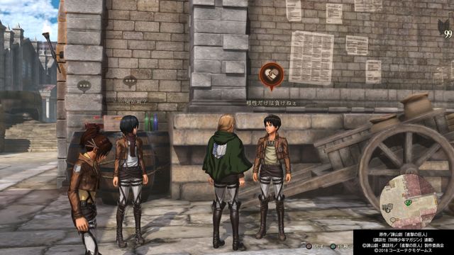 在原作漫画当中,像是「突然袭击城市的超大型巨人真实身份」以及「巨人的根源」等谜题,都已经有一定程度的解说。如果是原作读者的话,在事前已经知道这些谜底为前提,重新在游戏中去体验初期故事,一边游玩时一边想像众多角色这时的内心想法,想必更能让人对故事有更深一层的体认。