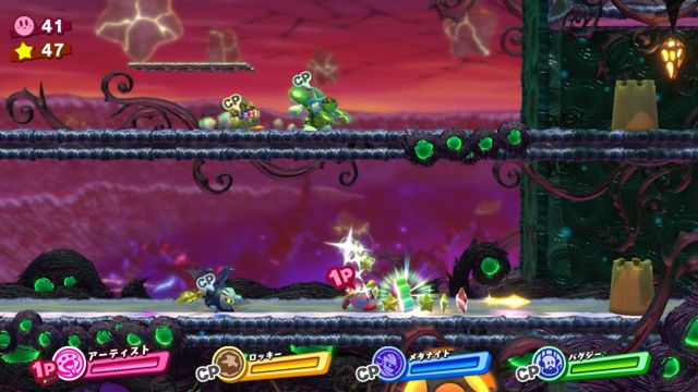 像是帝帝帝大王或是魅塔骑士的特别角色,也会以「梦幻好友(ドリームフレンズ)」身份登场,并不是在关卡当中,而是要前往「梦幻神殿(ドリームしんでん)」来让他们加入成为伙伴。看到在过去作品当中,通常是以敌人或是好敌手身份登场的角色们,排成一列一起行动的样子,对系列忠实玩家来说一定是非常感动吧。