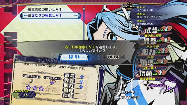 还有令人在意的一点,是在会话途中直接教导的操作。因为快速播放讯息和直接教导的「赞美」一样是[○]钮,结果时常来不及反应突然插进来的直接教导,就这么一路「赞美」下去。虽然只要多加注意就可以避免这种情况,但像这种要节奏顺畅推进的游戏而言,算有些小缺憾。