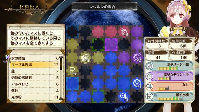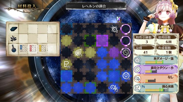 炼金工房系列中最耳熟能详的,就是在调合面板上投入材料方块,类似拼图的调合系统。