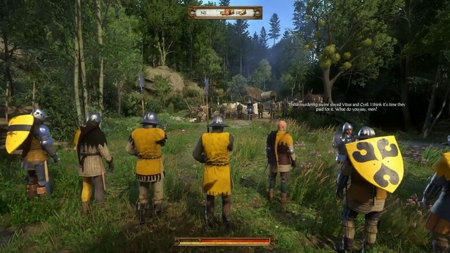 总的来说,《天国:拯救》很好地还原了中世纪的景象,可以说是所有中世纪题材游戏中最重视细节和历史的作品了。游戏着重于战斗系统的制作,也卓有成效。游戏主要讲的是两个同父异母的王子争夺王位的故事,其他RPG的剧情都是主角拯救世界的剧情,但在这部游戏里,主角一直做与冲突无关的任务。最有趣的一个任务是代替当地牧师在星期天的弥撒上背诵扬•胡斯(Jan Hus)的布道。因为笔者昨夜和牧师一起把酒言欢,把他喝得宿醉不醒,所以笔者只能替他去了。类似这样的趣事真的不少,它们平衡了中世纪战争的残忍和悲惨,给玩家带来了欢笑。