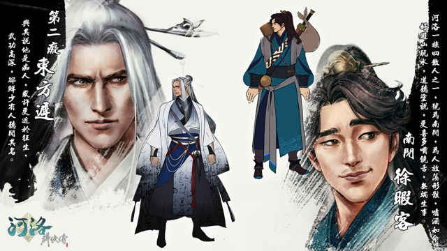 《河洛群侠传》是由河洛工作室掌门人徐昌隆领军开发、继《侠客风云传》系列后将推出第三款单机作品,以江湖冒险为主题,设定为开放的武侠世界。4月1日是河洛工作室重组纪念日,官方也特别选在当天公开开发中新作《河洛群侠传》消息并曝光第二痴东方迟、南闲徐霞客两位新角色形象。