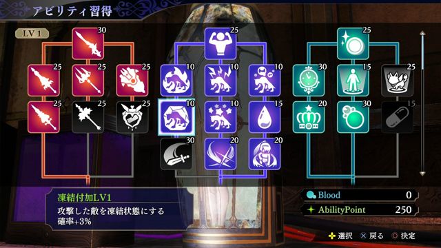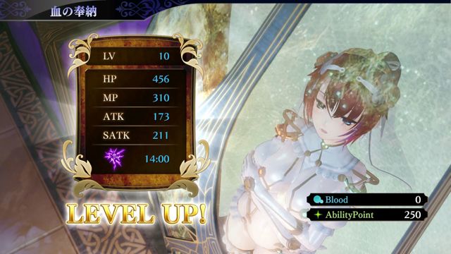 饭店除了大厅和寝室以外,还有游泳池以及屋顶等不同设施,其中最重要的设施就是维修室(メンテナンスルーム)了吧。在这个设施里,可以净化打倒邪妖时淋到的苍蓝血液「Blood」,借此来提升雅尔洁的等级。提升等级就可以提升HP、MP以及ATK等能力数值,同时还可以获得「AbilityPoint」,使用这个点数,就可以从树状图的特殊能力当中自由学习各种能力。