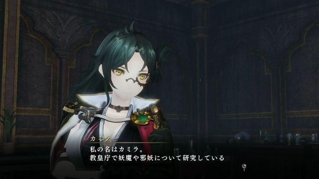 让雅尔洁变成半妖复活的卡蜜菈。一开始以为她只是个研究者,但其实会持枪和雅尔洁并肩作战