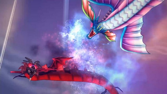 视频中,主人公一行在蟠蛇谷与敌人展开了激烈的战斗,熊熊燃烧的火焰中,反派司马懿登场。尤为让人注意的是,计蒙显露真身变化为龙,一红一篮两条巨龙在空中激烈缠斗,场面颇为壮观。