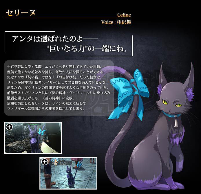艾玛在军官学院入学时偷偷带进来的黑猫。披着一身艳丽华美的皮毛,不知为何能够说人话。其实并非艾玛的家养猫,而是其“监视者”的她,为了测试黎恩是否具备骑神唤醒者的资质,多次在黎恩附近对他进行试炼。在前作最后与黎恩一同搭乘“灰之骑神瓦利玛”,在激战之后仍然完败给了“苍之骑神”。发现危机的瑟蕾奴,违背了黎恩的意志强制命令瓦利玛脱离战场。