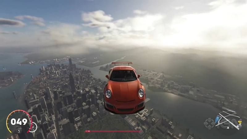 在最新的试玩片段中我们可以看到,游戏中的各种类型载具是可以随时切换的,玩家在城市中进行竞赛时,能够无缝地切换车辆、船只、飞机,来更快地攻略整条路线。在演示中,我们甚至可以看到玩家的飞机在空中急速转换为车辆然后自由落体的画面。从这个片段我们可以得知,本作极端弱化了车辆碰撞的物理系统,车辆就算经过极强的冲击也不会发生损坏。