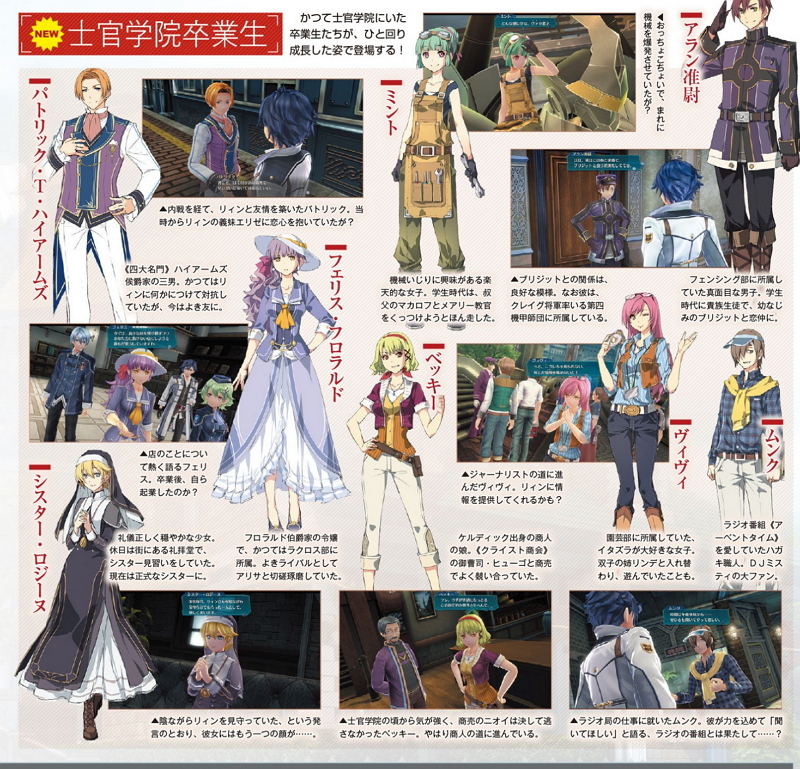 日本Falcom预定于9月28日发售的PS4《英雄传说 闪之轨迹3》在本周杂志中公开新情报。曾经士官学院的毕业生们如今都走在自己的人生道路,除了本次介绍的几人外,还会有其它的毕业生登场。