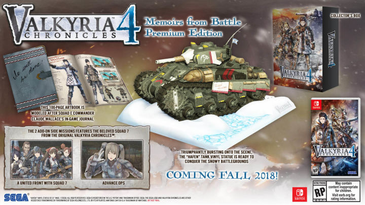 目前《战场女武神4》有两个版本,都可以进行够美或预订:PS4、Xbox One、任天堂Switch平台的标准版以及一个名为“战场回忆录(Memoirs From Battle)”的特殊版。“战场回忆录”版本除了游戏本身外,还将附带丰富的额外物品,是粉丝们的首选。