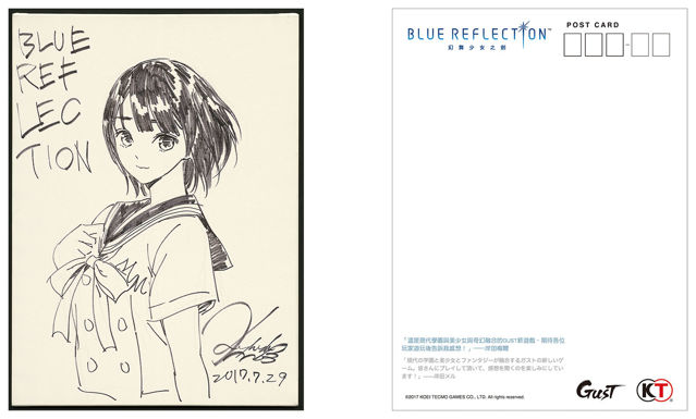 只要购买首批《BLUE REFLECTION幻舞少女之剑》中文实体版的玩家,都能获得总监岸田梅尔老师亲签「壁贴+明信片组合」(3款)。