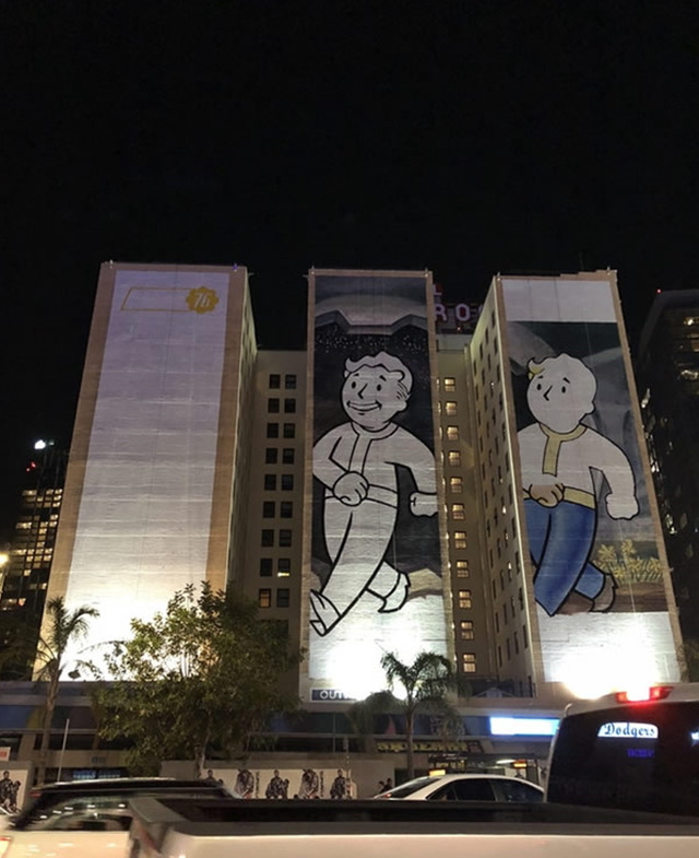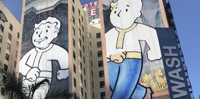 近日,在E3会场附近的建筑上已经出现了《辐射76》的巨幅海报,海报中的形象大家也很熟悉。