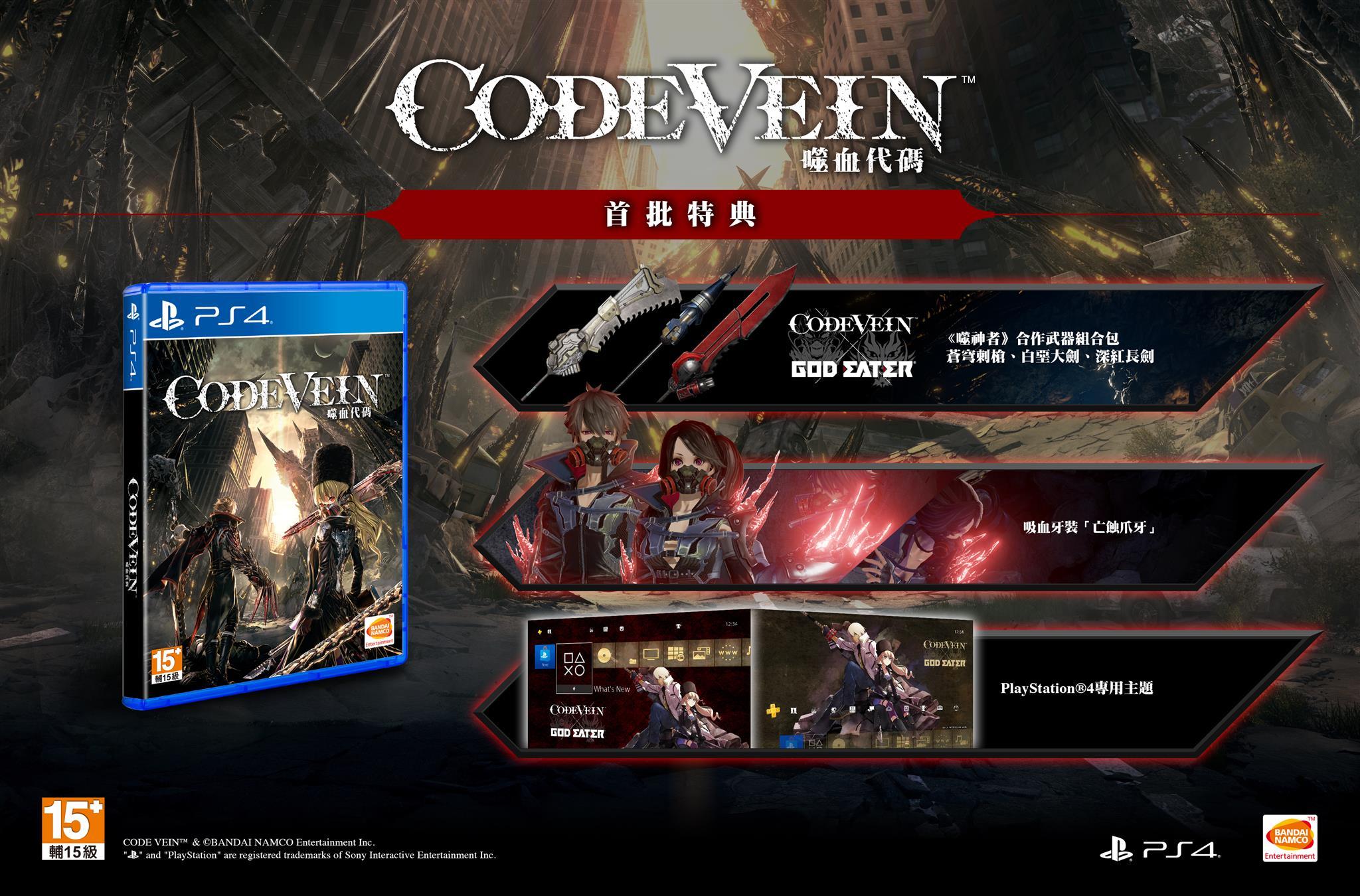 台湾万代南梦宫娱乐今天正式公布了动作RPG游戏《噬血代码(Code Vein)》繁体中文版的首版特典以及豪华版、限定版内容情报。《噬血代码》将于9月27日登陆PS4、Xbox One平台,PC版本将于9月28日推出,中文版游戏将与日版同步发售,各位玩家敬请期待。