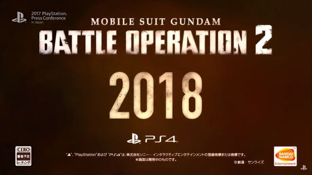 BANDAI NAMCO今日在PlayStation 2017东京电玩展展前发表会中,曝光了旗下动作游戏系列最新作《机动战士高达 激战任务2》,预定2018年在PS4平台上市。