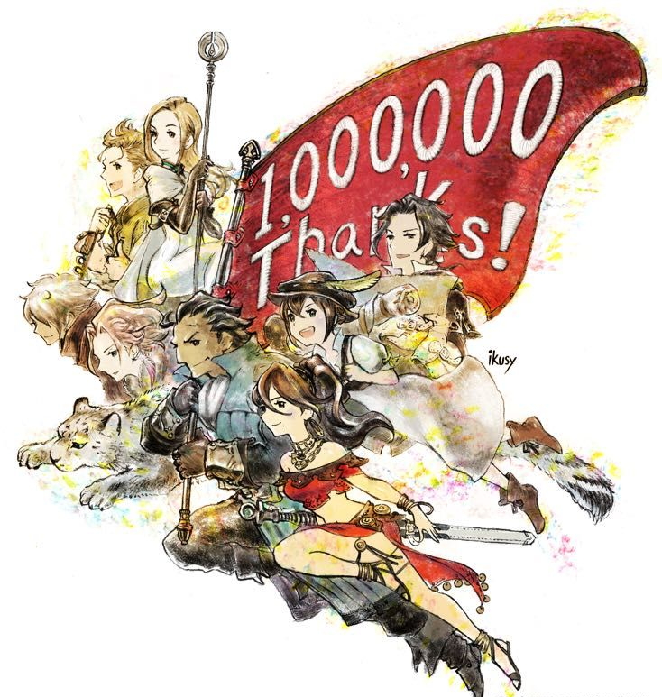 Square Enix于Switch平台上推出的首款原创RPG游戏《八方旅人》在今日公布了全球销量成绩。Square Enix表示本作在全球的实体版与数字版销量合计已经突破了100万套,为了庆祝这一销量,官方在推特上还发布了一张贺图。