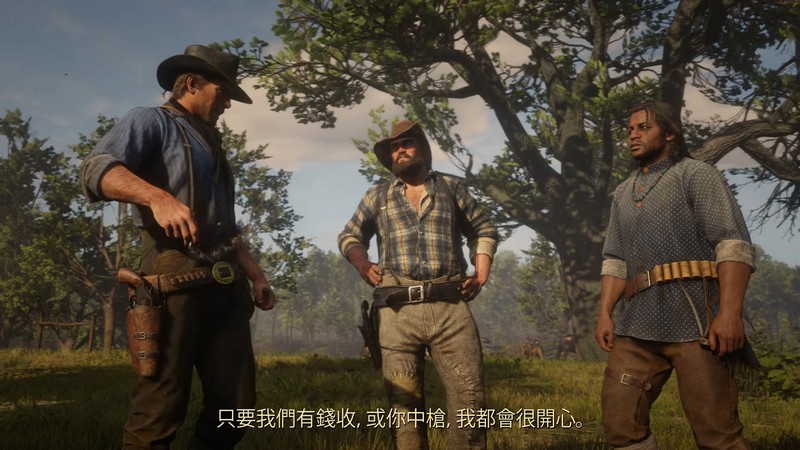 首先,我们可以了解到游戏包含营地系统,玩家可以在营地中和同在范德林德帮的亡命之徒们进行交流,游玩各种小游戏,接受支线任务,通过狩猎等途径为营地带来补给。随后,官方介绍称“枪不再是您与游戏互动的唯一方式”,玩家可以与路人进行互动,和恶人交战,寻求警长的帮助,或是威胁目击者,避免他们把你的犯罪行动公之于众。面对路遇的各种事件时,也可以选择是横加干涉,或是高高挂起。而且我们可以大胆猜测,游戏中的众多遭遇事件很可能引出一条任务线,讲述一系列故事,就像《西部世界》中一样。