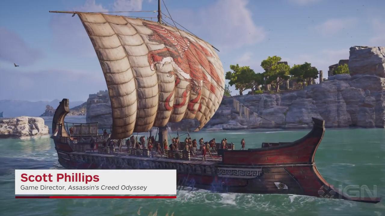 IGN分享了一段《刺客信条:奥德赛》的海战的全新演示,游戏总监Scott Phillips为大家介绍关于《刺客信条:奥德赛》重新设计的古希腊海战玩法。