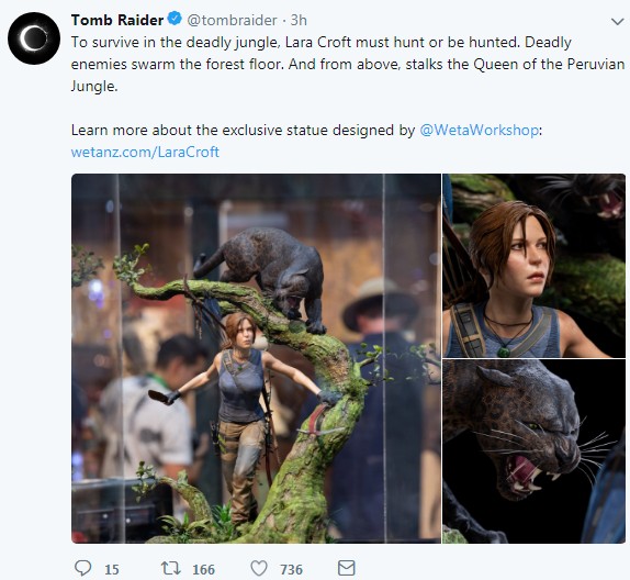 从图片来看,劳拉的服装和背部的弓箭袋,匕首以及周围环境都还原的很棒,树梢上的猎豹栩栩如生,一场大战一触即发。官推表示:为了在致命丛林中存活,劳拉必须猎杀敌人否则就被猎杀。致命的敌人布满丛林。劳拉的头上还有秘鲁丛林的女王(猎豹)。这款手办的劳拉是1:4大小,售价799美元。