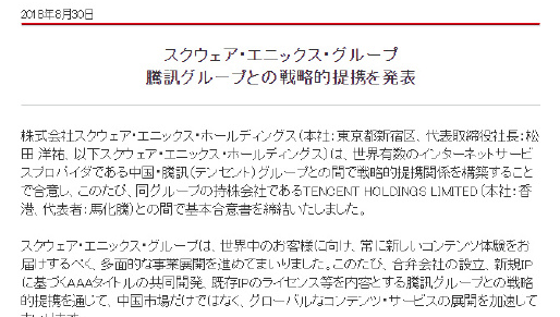 关于SE与腾讯之间合作的具体内容,将会在决定之后陆续公开。