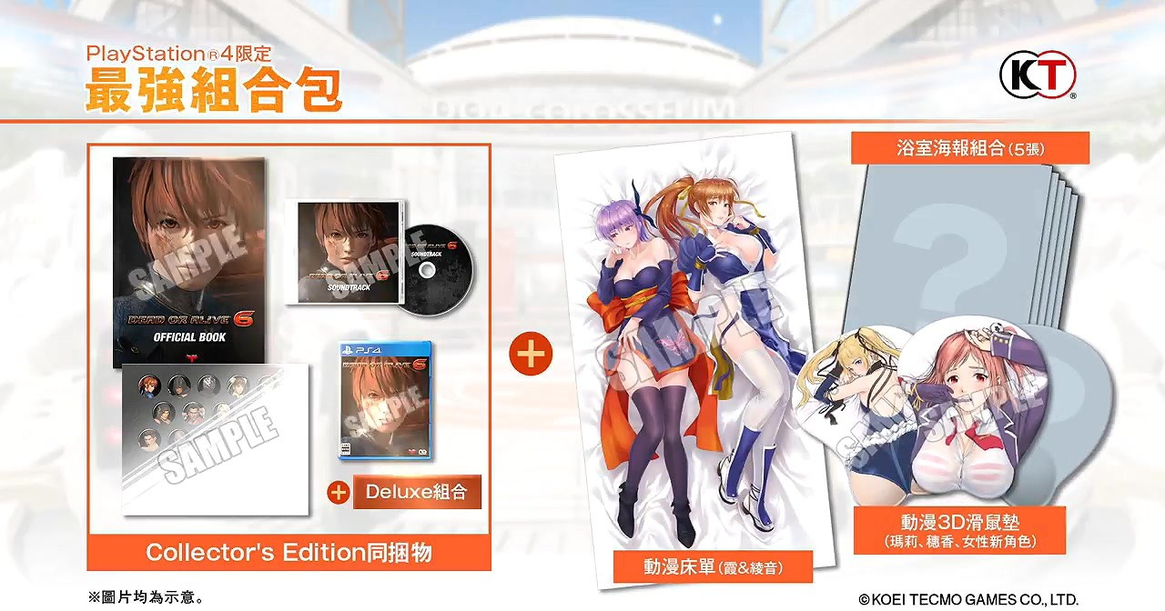 本作的预购特典为「追加角色「女天狗」使用权」,早期购入特典(首批封入特典)则为「服装(霞)」。另外,各项特别版也决定发售。「Digital Deluxe Edition」中将附「追加角色「PHASE-4」使用权」、「Deluxe 服装组合(25 套)」、「Deluxe 追加 BGM」以及「Digital Deluxe 特典:服装(霞)」;「Collector's Edition」内附收录游戏 BGM 的「原声带音乐光盘」、「官方设定集」以及「纪念徽章组合(25 个)」;「最强组合包」则包含「Collector's Edition」品项在内,加上「动漫 3D 鼠标垫(玛莉、穗香、女性新角色)」、「动漫床单(霞&绫音)」以及「浴室海报组合(5 张)」三样令系列玩家垂涎不已的豪华周边,本次将推出上述三款各自拥有不同魅力的特别版。