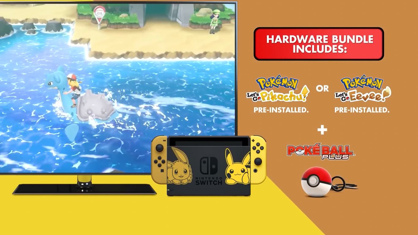 这款限定套装中已经预安装了游戏本体,无论选择购买哪个版本的游戏,在主机上都将带有皮卡丘与伊布的图案,以及棕色和黄色的Joy-Cons。套装中还将附带精灵球造型的控制器。而目前任天堂尚未公布这款限量套装的价格。