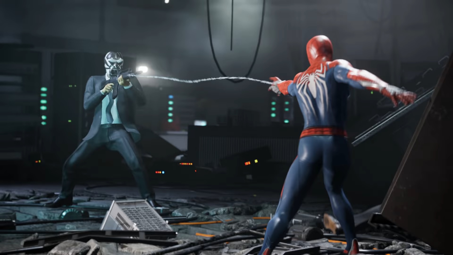 你应该自己尝试各种蛛网和攻击的组合技巧——向一群敌人投掷蛛网炸弹能把他们粘在附近的物体表面,之后衔接一个落地重击或是蜘蛛朋克战衣的特殊能力能够把剩余的敌人震到墙壁上,让他们丧失战斗力。