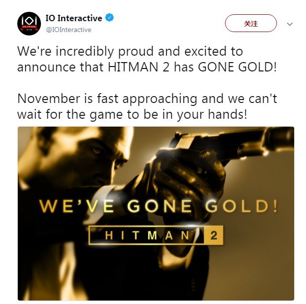 官方称:“我们骄傲而激动地宣布,《杀手2》已经进厂压盘了。11月快要来临,我们迫不及待想把这游戏送到你们手里。”看来IO Interactive对《杀手2》未来的表现信心十足,这款新作将带来更智能的AI和更多样化的玩法,还将加入合作模式“狙击手刺客”。
