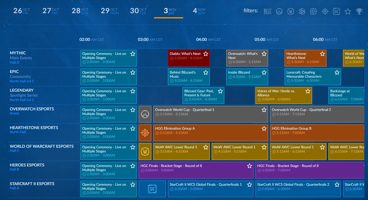 除此之外,今年包括《守望先锋》、《炉石传说》、《魔兽世界》、《风暴英雄》与《星际争霸》都有45分钟的未来发展相关论坛,但仅有《风暴英雄》有另一场深入探究的论坛,这通常会是研发团队深入探讨新游戏内容与玩法的时段。虽然时间表上还有许多像是艺术、过场动画、配音等论坛,但依据过往经验,这些可能就比较不会有太多重大的新内容宣布。
