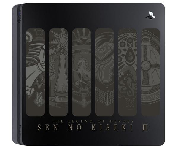 从外观来看,这款限定版PS4非常契合游戏主题。机身表面印有轨迹系列游戏中各大组织的标志,包括游击士协会、噬身之蛇、帝国和星杯骑士团等。