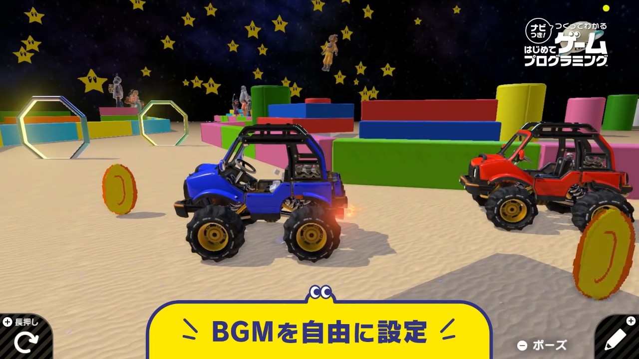 《第一次的游戏程式设计》是由任天堂开发的一款程序设计类游戏。在这款和《超级马里奥制造》、《Labo》等作品有着一些相似理念的游戏中,玩家可以将不同的游戏元素连接起来,从而体验编程设计游戏的乐趣。