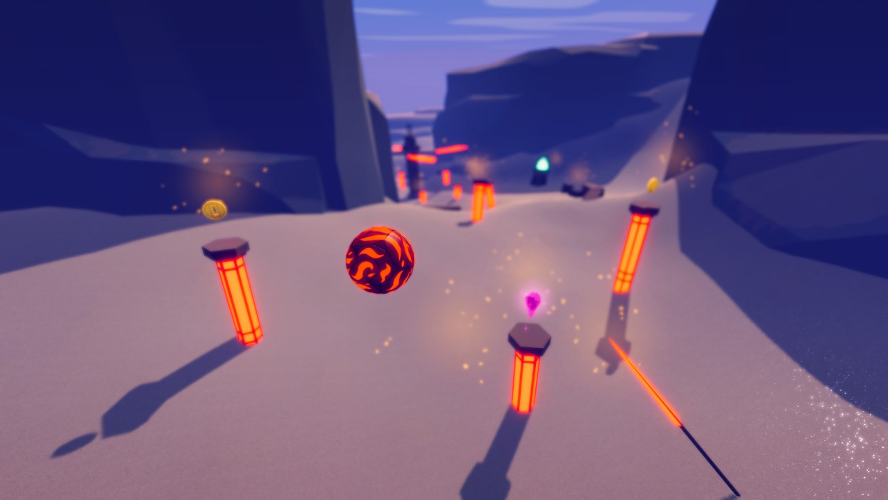 《象形文字 Glyph》是一款免费的虚拟现实游戏,在游戏中,你以第三人称视角控制一个球状的机械。你要挑战的是利用精准和速度来收集遗迹和文物来完成关卡。