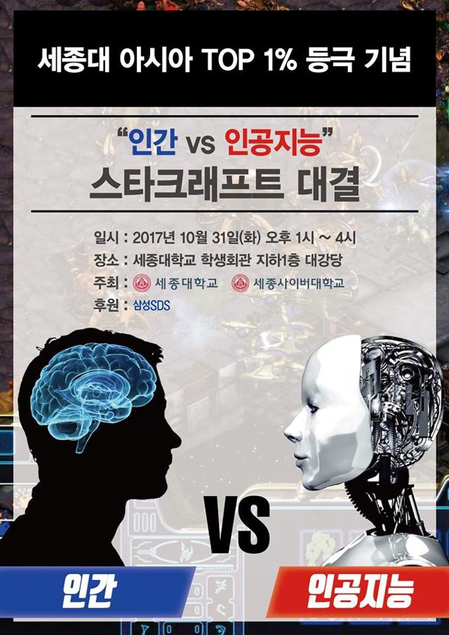 韩国首尔世宗大学宣布,预定于2017年10月31日举办《星际争霸》人类对决AI赛事。