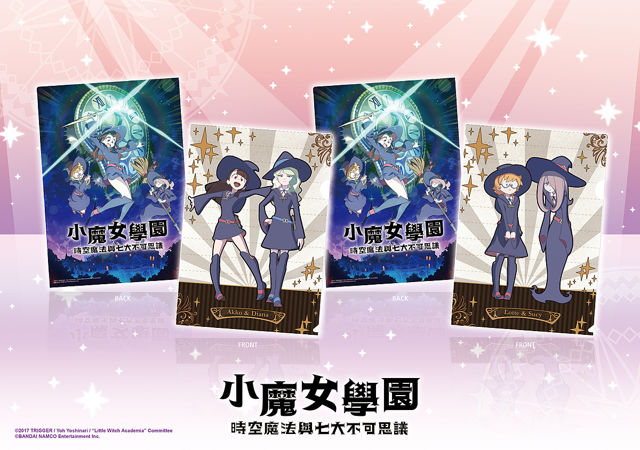 《小魔女学园时空魔法与七大不可思议》特制双面L夹:以「TRIGGER」特别绘制的游戏主视觉,搭配粉丝间的人气组合「亚可与黛安娜」以及「洛蒂与苏西」两款设计,喜爱「小魔女学园」的玩家务必入手珍藏!