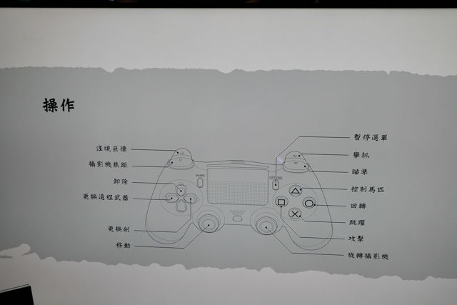 现场试玩的版本是以PS4 Pro 搭配4K 解析度大萤幕电视以最高画质呈现。收录第1、第3 与第13 巨像供试玩者挑战。进入游戏前可以选择使用的字幕语言,其中已经包含繁体与简体中文,不过因为是开发中版本,因此仍有少部分选项尚未中文化。语音部分一样是游戏的原创语言。