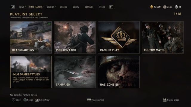 为了把这项精彩的新功能带给支持者,SIE跟Activision、Sledgehammer Games、High Moon及MLG的团队紧密合作,精心为《使命召唤》创建出世界水平的竞赛系统。这个全新平台以及MLG GameBattles与《使命召唤:二战》在游戏层面上的合作,让从未接触过电竞的玩家跟资深玩家均可轻易快捷地投身竞赛之中。