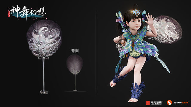 夕羽对应的图腾是一只小鸟的剪影,暗示了她与众不同的身份。而她的故乡百鸟国,在与上古传说中的「鸟类图腾崇拜」息息相关。百鸟国国主即是中国五方上帝之一的白帝少昊,相传他曾在九州东方的大海之上建立一个神奇的百鸟之国,国中百姓皆为各类鸟族,夕羽出身的金乌族便是其中之一。金乌,顾名思义是一种金色的乌鸦,天生三足,上古时期被认为是太阳的化身,在《山海经》的羲和浴日、大羿射日等诸多神话中,都有金乌族的身影。在《神舞幻想》中,身为金乌族一员的夕羽通体墨黑,一心向往着哥哥的金色羽衣。尚且年幼的她厌烦了长辈们的劝导,只身离开故乡来到九州大陆,与飞星相遇,并一起开启了一段纵横九州的冒险旅程。