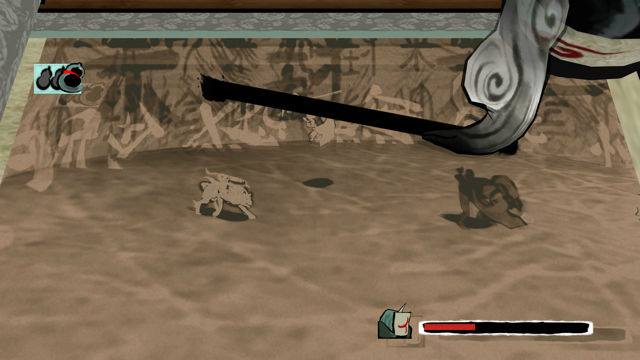 在这之中巧妙融入的便是「笔调」。能把世界像图画一般撷取下来,挥毫引发各式各样的奇迹。这是天照拥有的“操控森罗万象的神迹”,也可说是必杀技。只要墨水有存量,随时都能让时间停止流逝,判断当下状况使用,但敌人不同效果自然也有差异,这部分也充满了动作游戏该有的战略性。