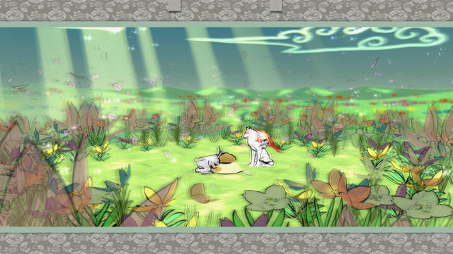 正如玩家们所看到的,光游戏截图就让人留下深刻的印象,角色活动时的演出手法也很讲究。以天照使用的特殊力量「笔调(笔しらべ)」为首,战斗时混有汉字的特效、天照击倒敌人时、自然回复万物复苏时「大神降临(大神降ろし)」的场面等,各处都施加了让人眼睛一亮的演出手法。