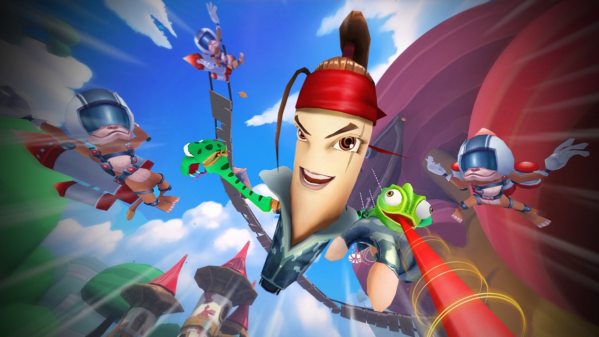 《王牌香蕉》是一款卡通画风、模拟射箭的虚拟现实游戏,利用PSN的联网功能,游戏支持最多四人的在线协力游戏。《王牌香蕉》游戏中玩家需要从蕉阿诺、蕉小妹、蕉女郎、蕉兄贵以及魔法蕉等香蕉射手中选择,通过PS Move控制器模拟射箭动作攻击来犯的猴群的骚扰,保卫小香蕉。